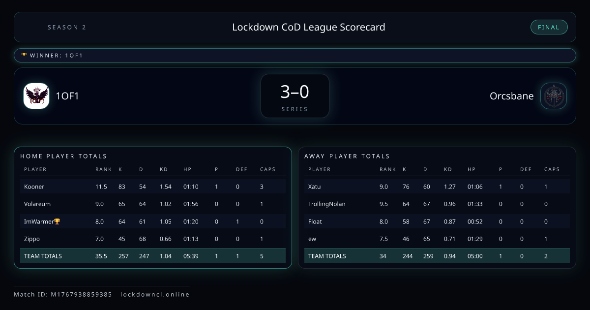 Lockdown CoD League Scorecard