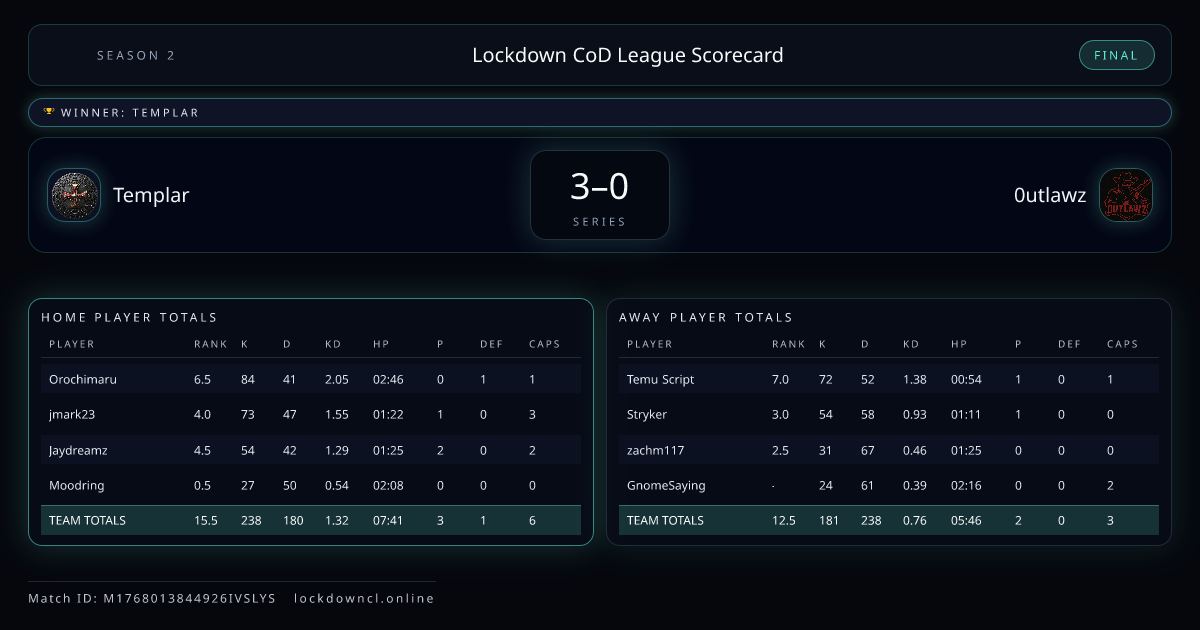 Scoreline: 3 - 0Winner: TemplarMatch ID: M1768013844926IVSLYS