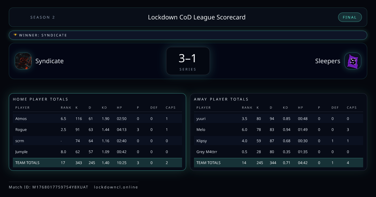 Lockdown CoD League Scorecard