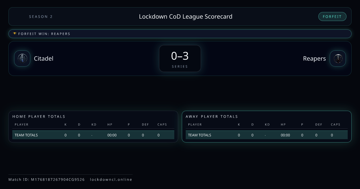 Scoreline: 0 - 3Winner: ReapersMatch ID: M1768187267904CG9526