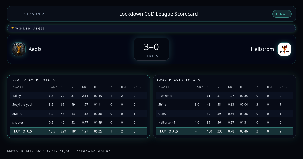 Scoreline: 3 - 0Winner: AegisMatch ID: M17686136422779YGJ5U