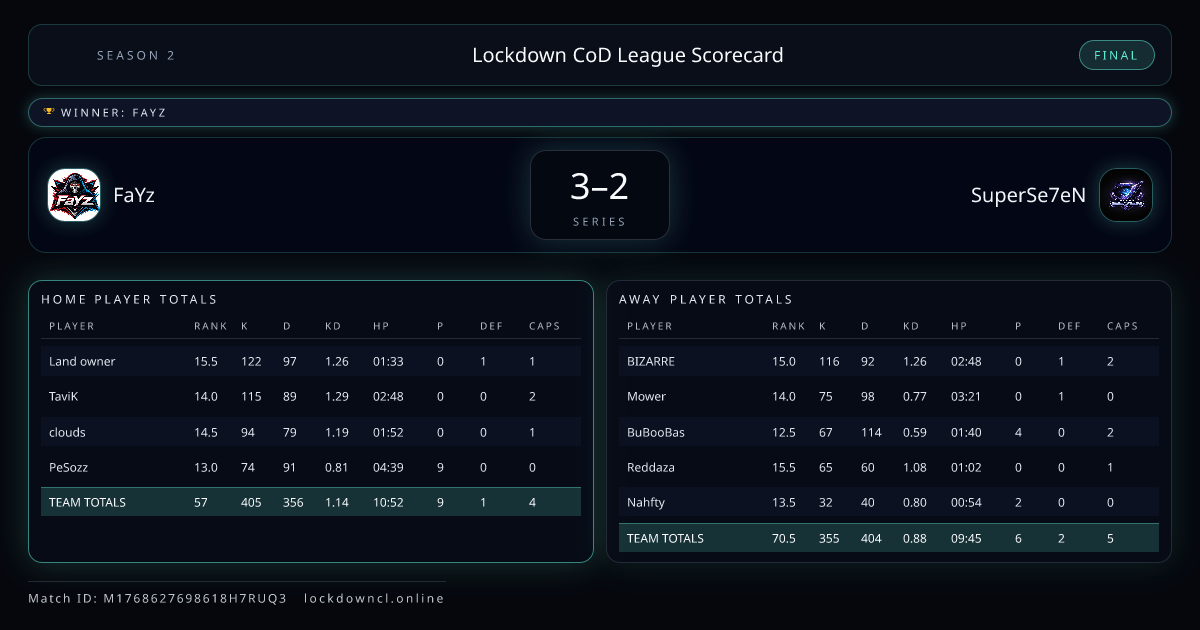 Scoreline: 3 - 2Winner: FaYzMatch ID: M1768627698618H7RUQ3