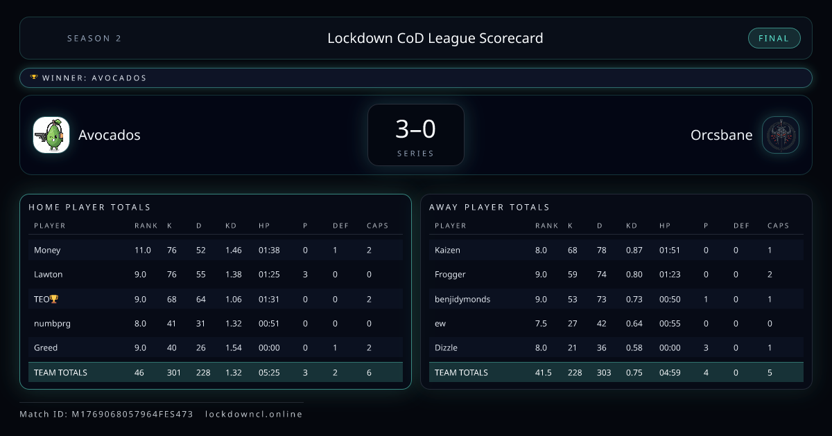 Lockdown CoD League Scorecard