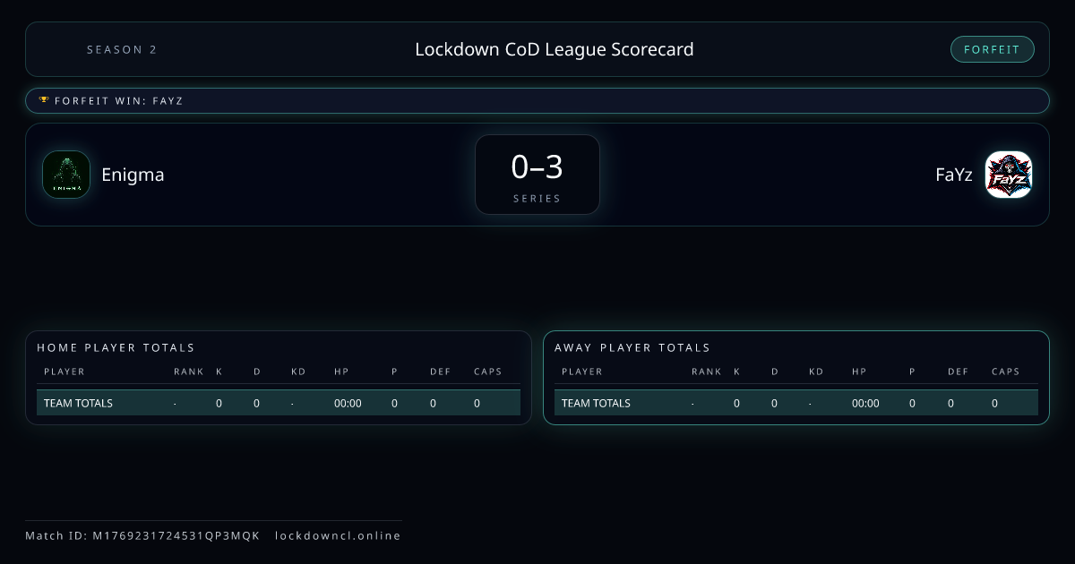 Map 2: Raid (SnD)Score: FORFEIT · Winner: FaYz