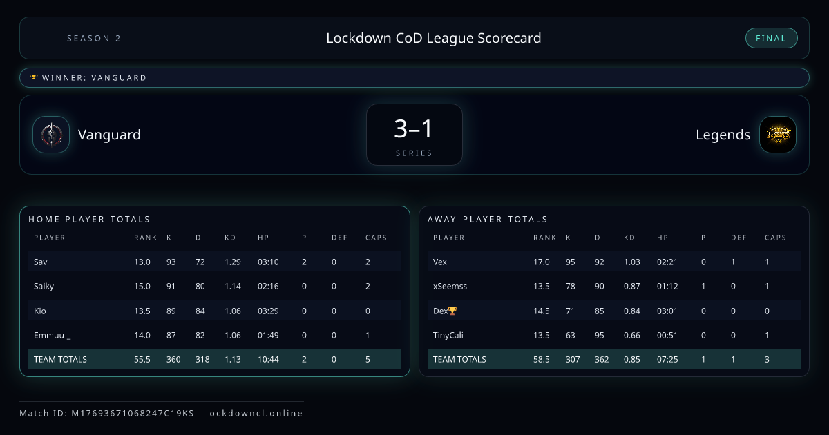 Lockdown CoD League Scorecard