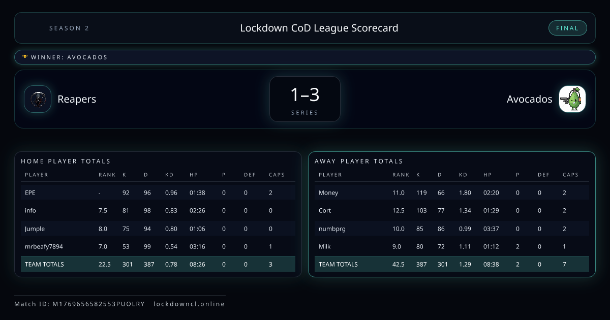 Lockdown CoD League Scorecard