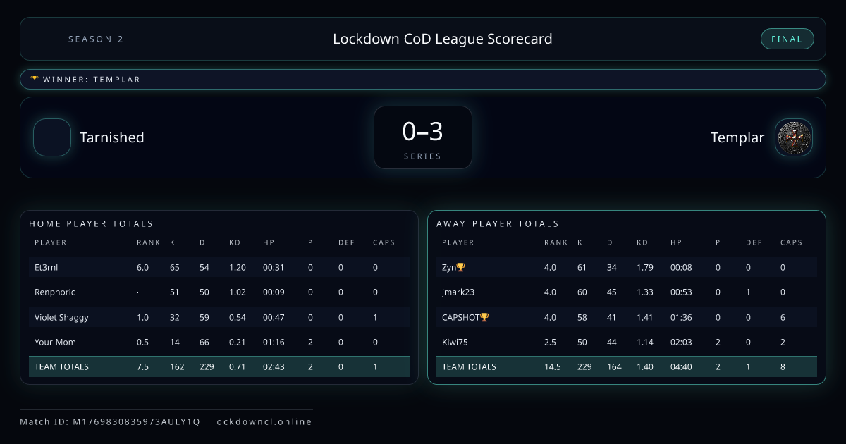 Scoreline: 0 - 3Winner: TemplarMatch ID: M1769830835973AULY1Q
