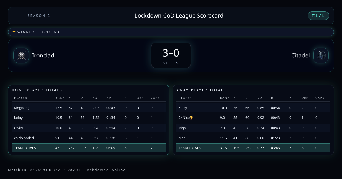 Lockdown CoD League Scorecard