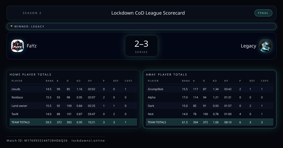 Lockdown CoD League Scorecard