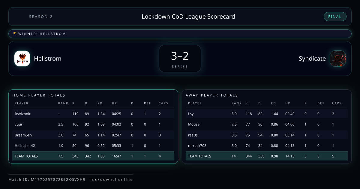 Scoreline: 3 - 2Winner: HellstromMatch ID: M1770257272892KGVXH9