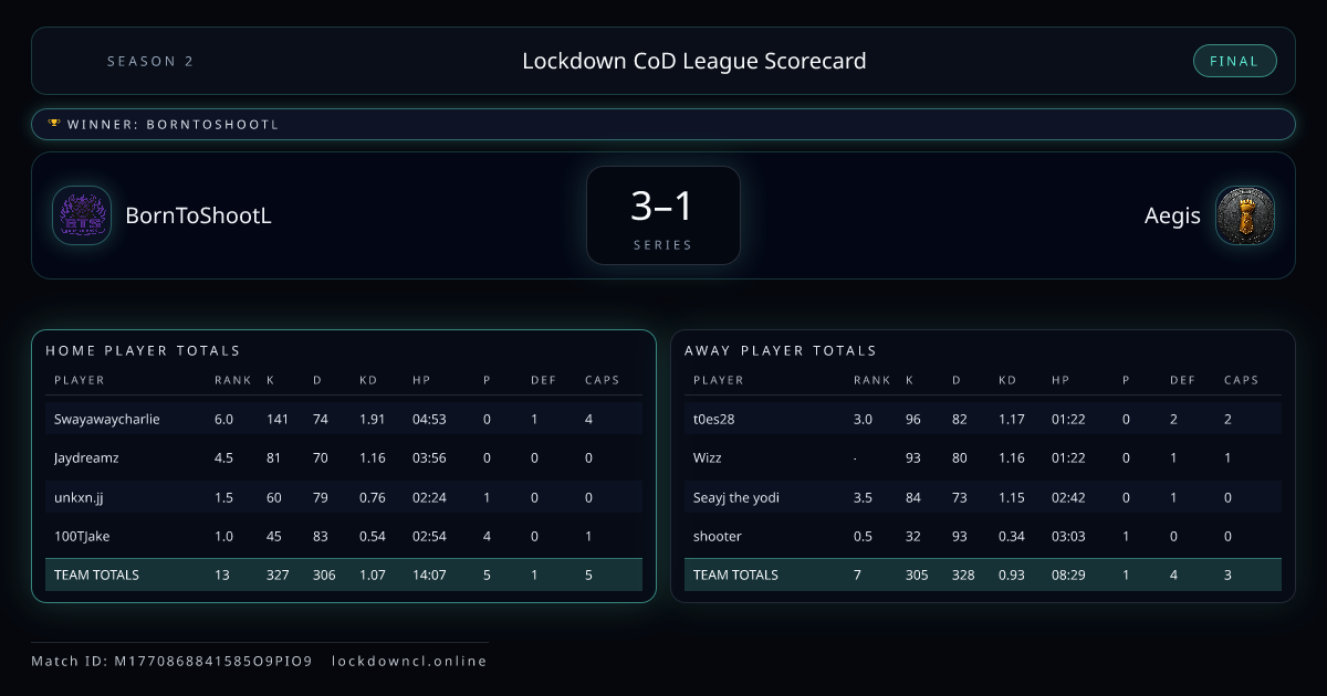 Lockdown CoD League Scorecard