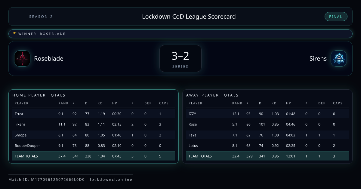 Lockdown CoD League Scorecard
