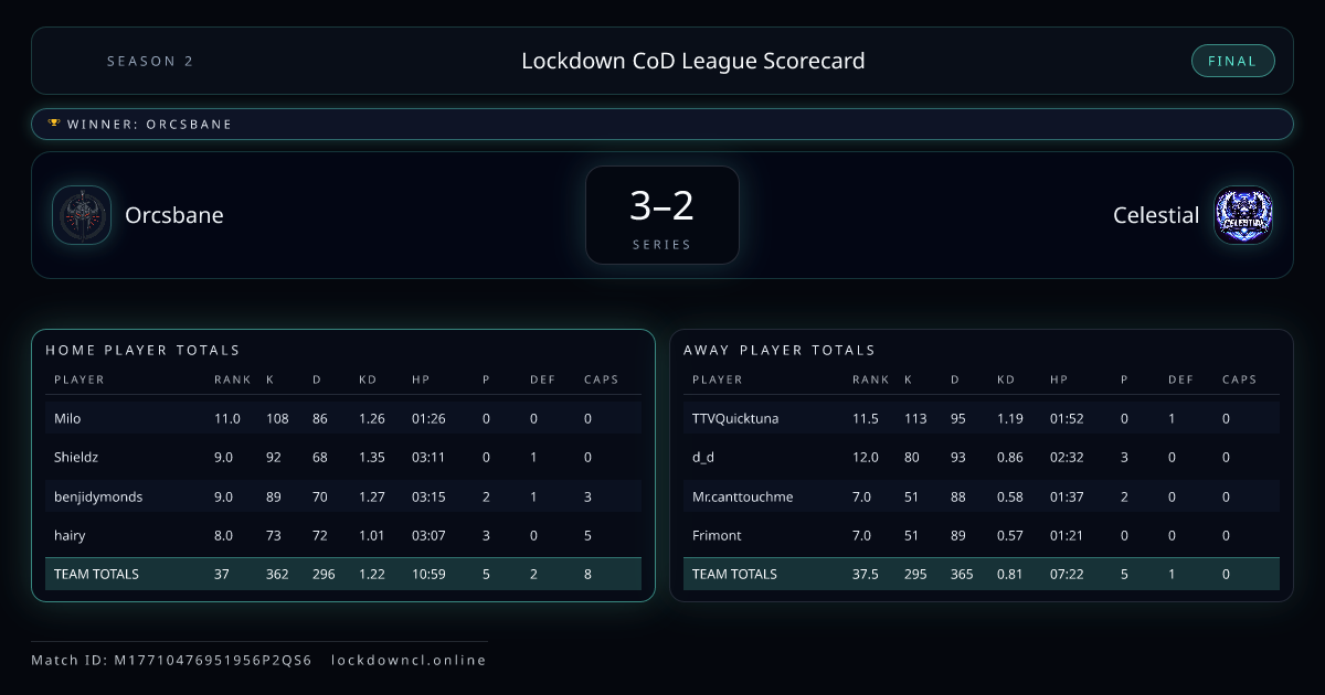 Scoreline: 3 - 2Winner: OrcsbaneMatch ID: M17710476951956P2QS6