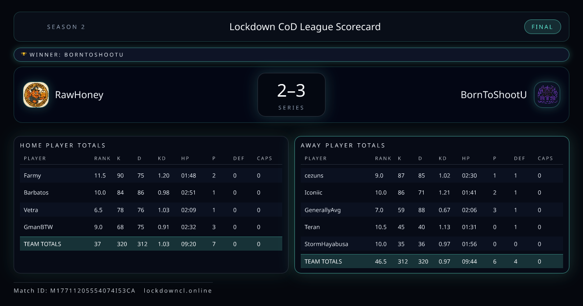 Lockdown CoD League Scorecard