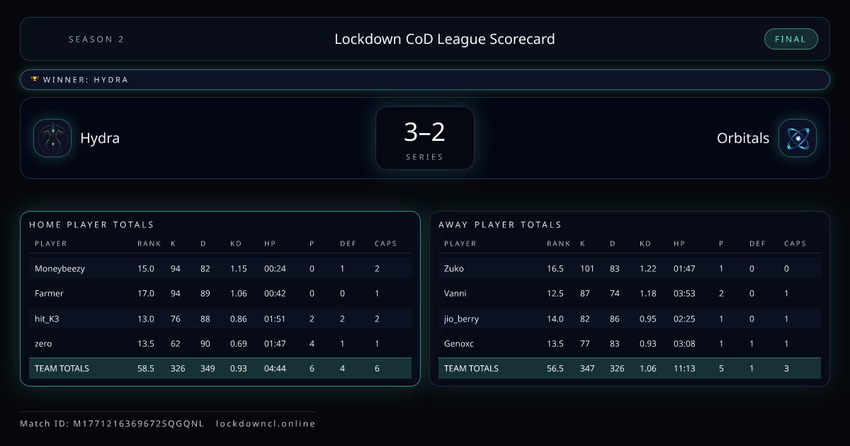 Lockdown CoD League Scorecard
