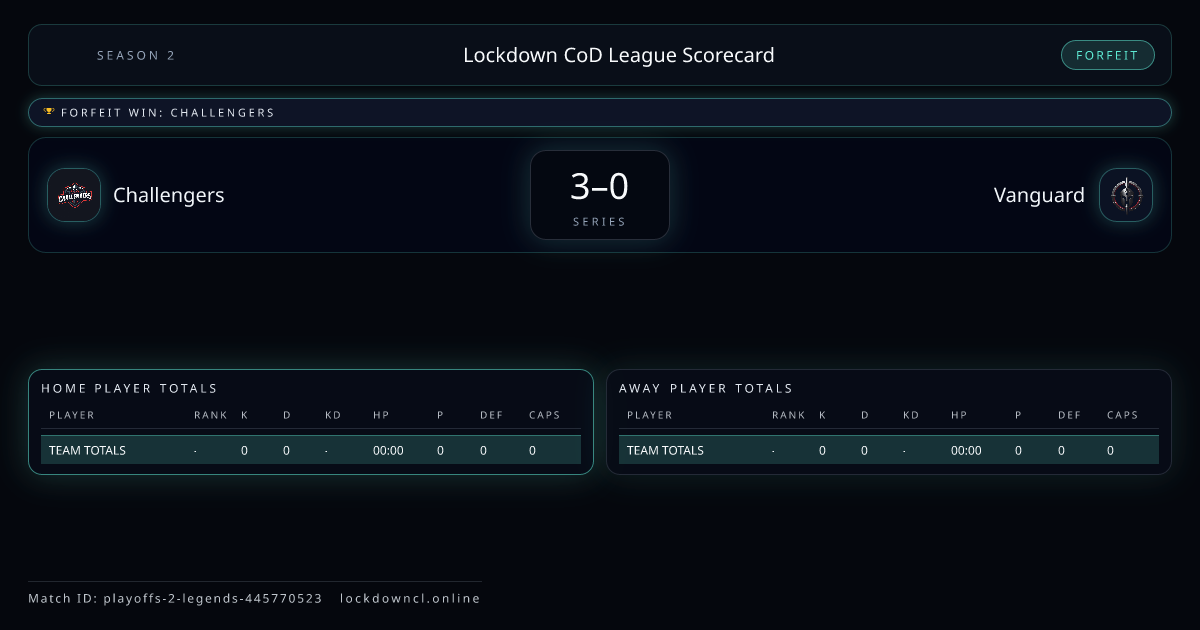 Scoreline: 3 - 0Winner: ChallengersMatch ID: playoffs-2-legends-445770523