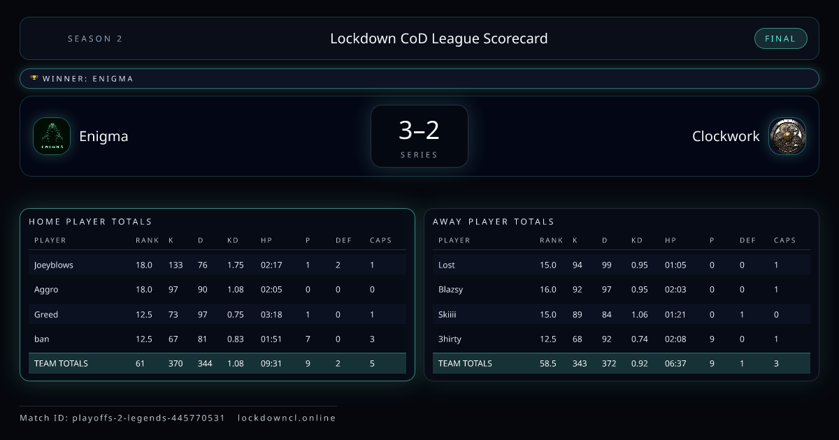 Lockdown CoD League Scorecard