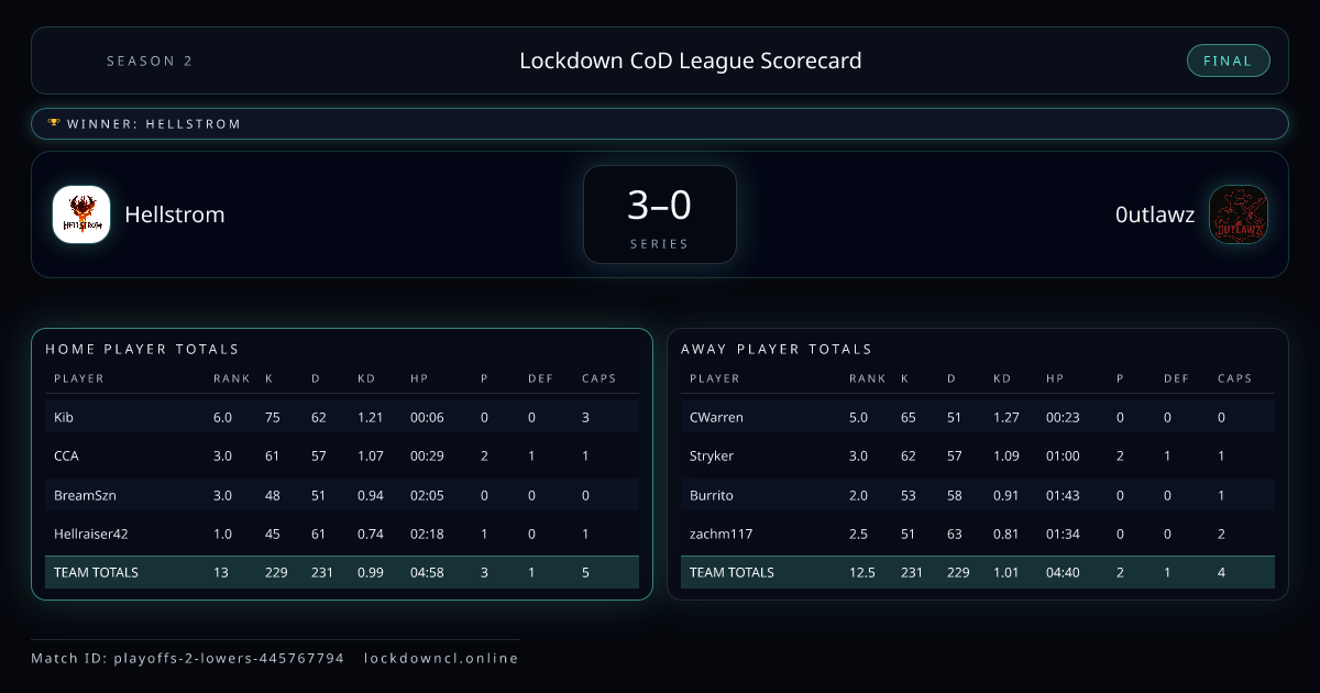 Lockdown CoD League Scorecard