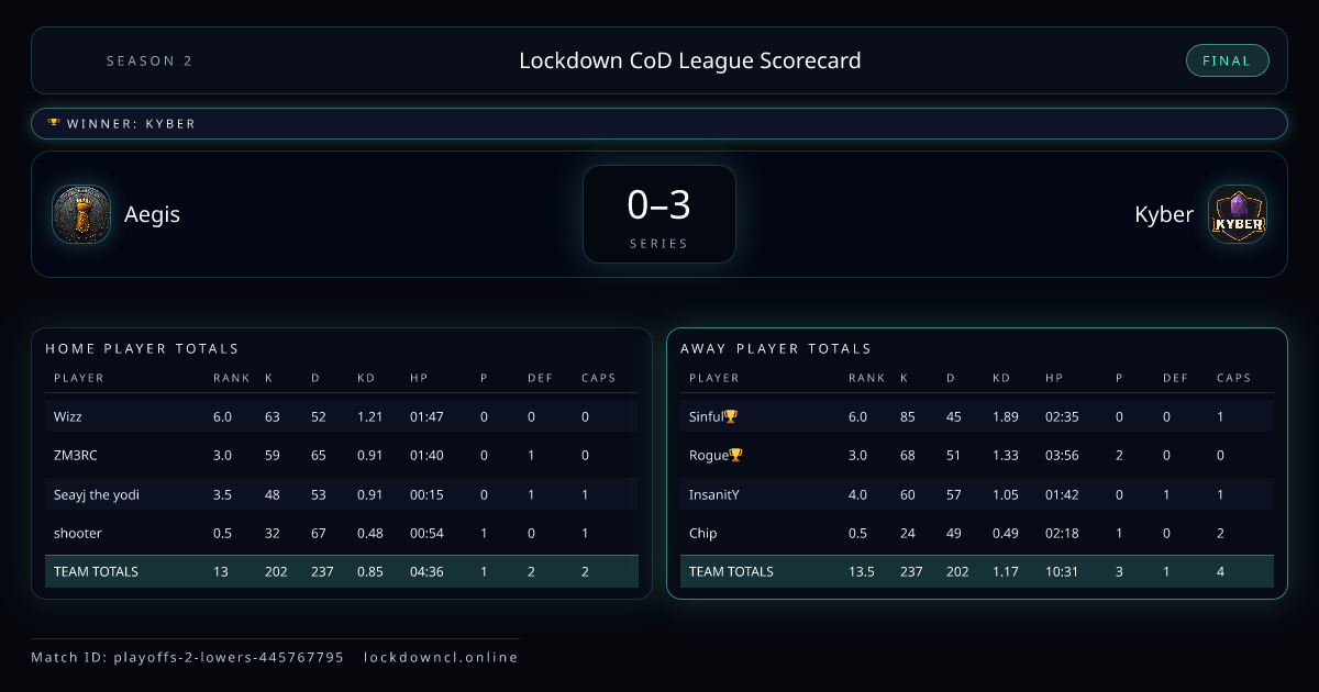 Lockdown CoD League Scorecard