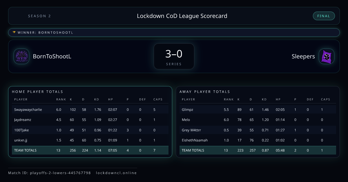 Scoreline: 3 - 0Winner: BornToShootLMatch ID: playoffs-2-lowers-445767798