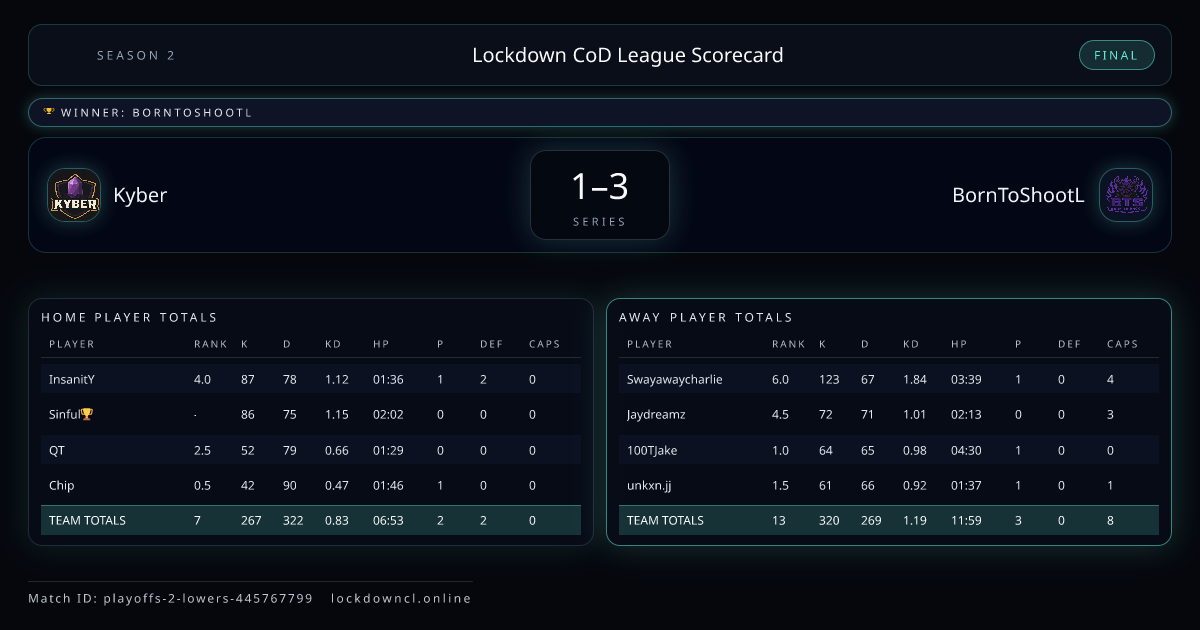 Lockdown CoD League Scorecard