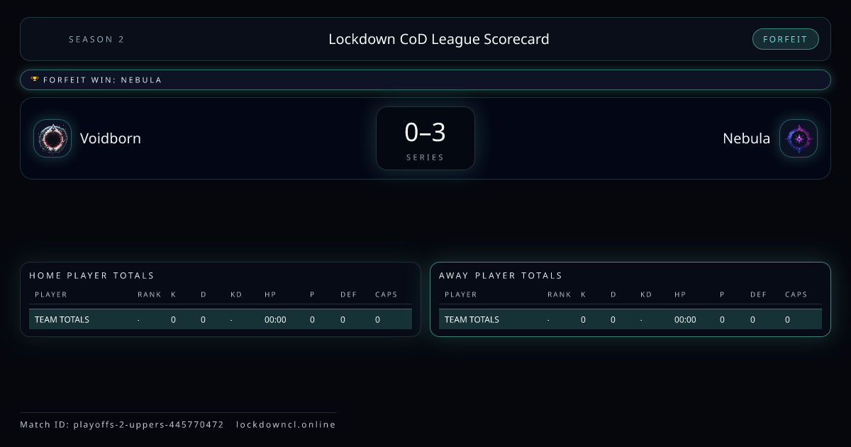 Scoreline: 0 - 3Winner: NebulaMatch ID: playoffs-2-uppers-445770472