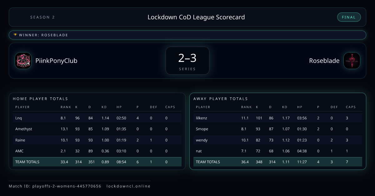 Lockdown CoD League Scorecard